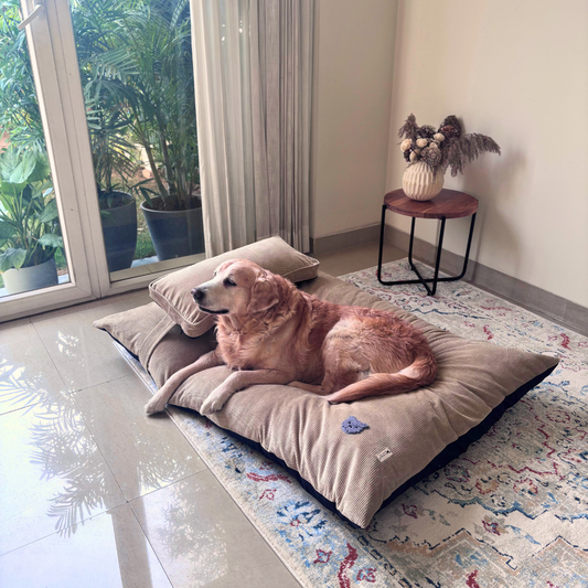 We found dog beds with polyester, rough canvas & prints we wouldn't want in our own home, so we designed beds that were breathable in cotton & linen with hypoallergenic filling, easy for pet parents to clean at home and elegant designs that you can proudly display in your home. India's first brand to launch fully washable dog beds now in UAE.