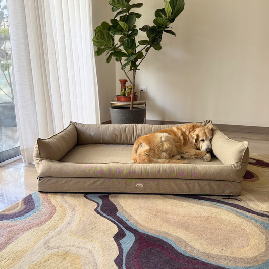 We found dog beds with polyester, rough canvas & prints we wouldn't want in our own home, so we designed beds that were breathable in cotton & linen with hypoallergenic filling, easy for pet parents to clean at home and elegant designs that you can proudly display in your home. India's first brand to launch fully washable dog beds now in UAE.