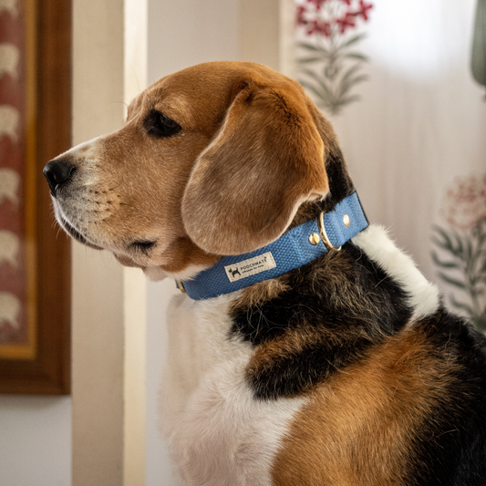 PoochMate Cotton Webbing Dog Collar & Leash : Cobalt Blue