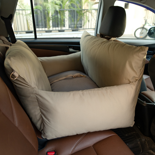 Our small dog travel beds are made to fit both in the front & rear seats, however it is not advisable to put your dog in the front to avoid any air bag accidents which can be fatal for your little one. To ensure your dog is comfortable at the back/middle seats and enjoys car rides, we recommend you sit along with your dog for a couple of rides till he/she gets accustomed to using the travel bed & finding it comfortable enough to snooze during long rides. With practice, most dogs become independent.
